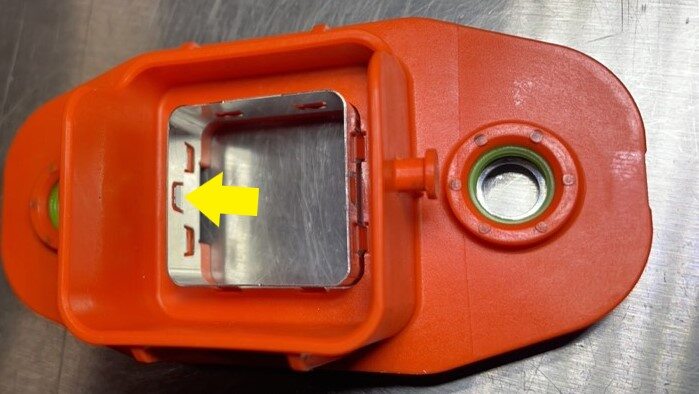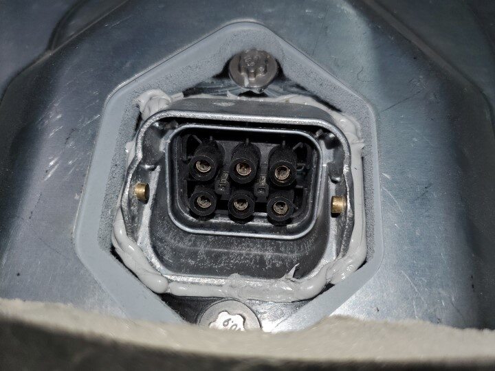 - Use an alcohol wipe to clean the charge port busbar connector lead contact surfaces of residual Penetrox, and allow at least one minute to dry.
