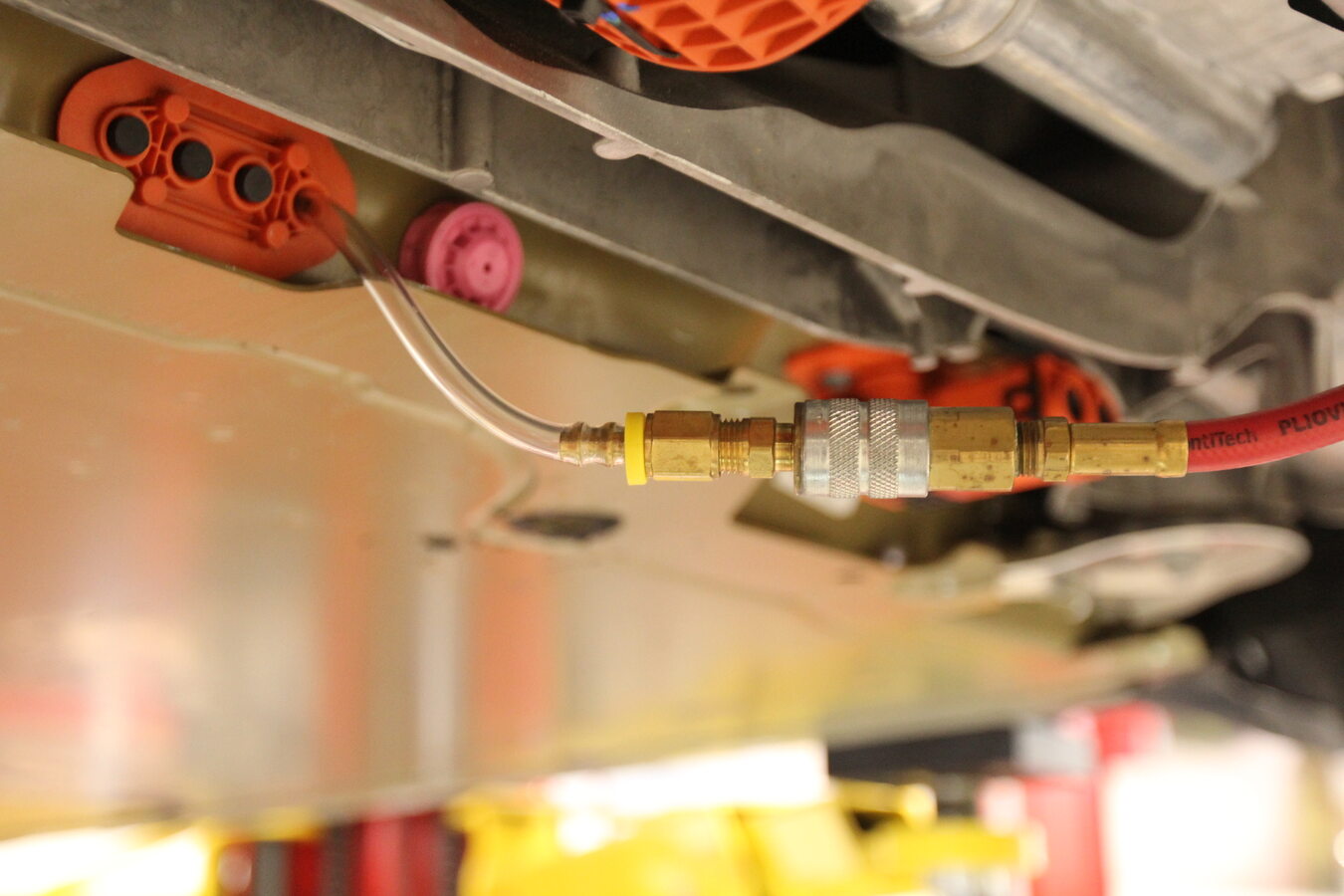 - Remove the vacuum refill hose from the refill cap on the coolant bottle.