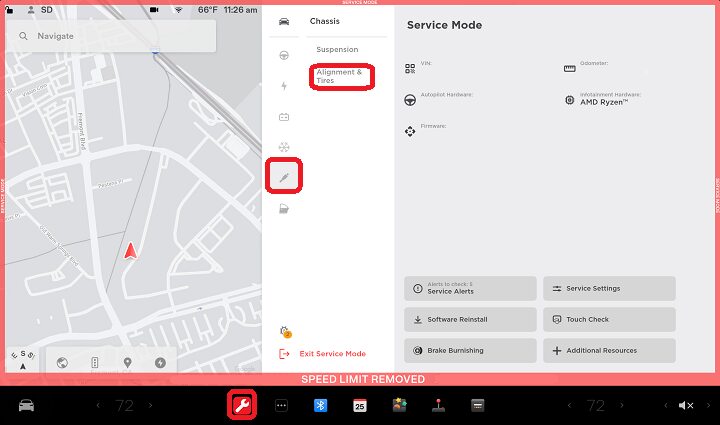 转至定位门户:点击Service > Chassis > Alignment and Tires。