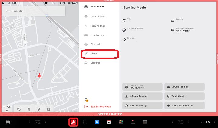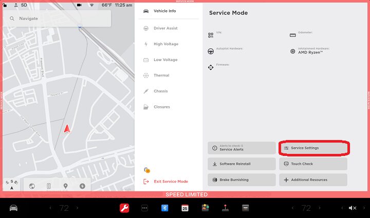 - 禁用触摸屏上的“限速”功能。点击Service > Service Settings > Remove Speed Limit。