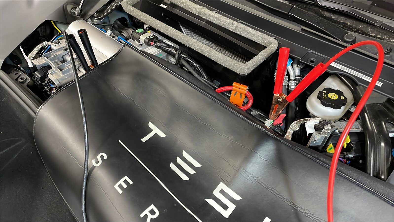 注Connect 12V support while LV battery is connected, Place fender cover over multi-system beam, Prevent shorting position cable to ground, Secure positive terminal to jump post, Secure negative terminal to chassis ground, Contactors will turn on and there will be an audible click