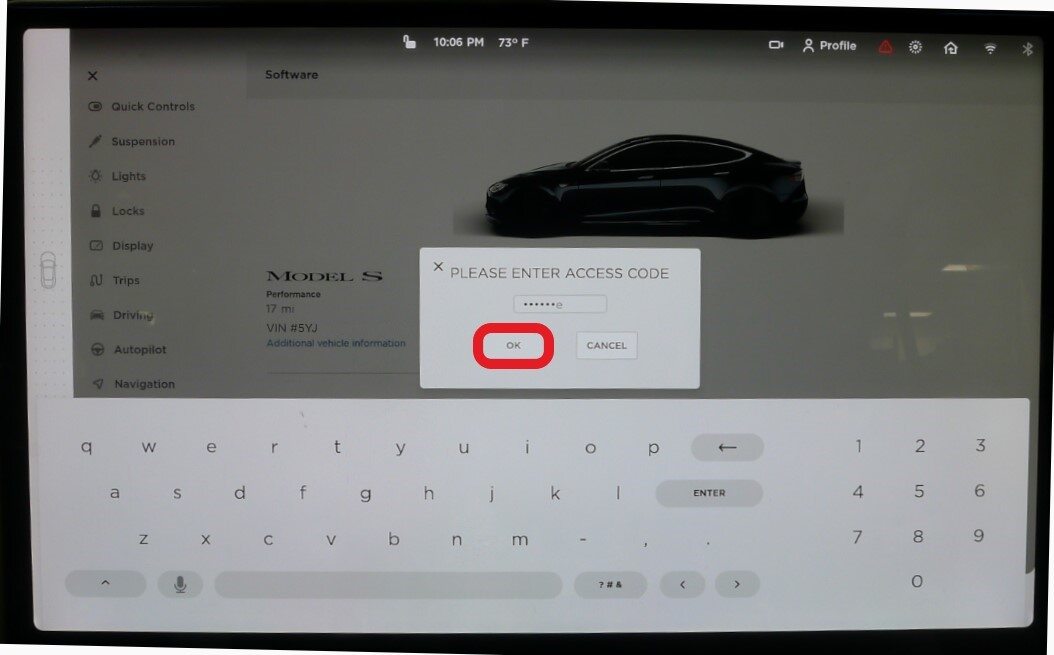 注Via Controls > Software, Touch and hold "Model" for 2 seconds then release, Use screen keyboard to type "service" into dialog box and select OK button