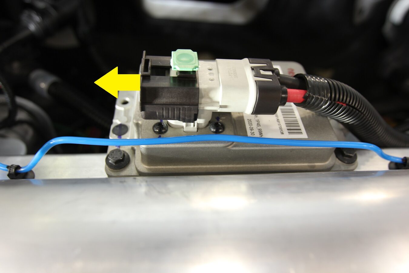 注1x connectors, Release LV battery but keep FRL loop connected, Lift up and release green locking tab, Pull black connector lock outwards to release connection