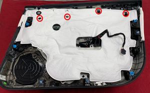 - 将左侧前车门饰板 NVH 垫放置到左侧前车门饰板上,然后将其固定到定位锁片(4 个)上。
