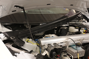 注用力按压绿色高亮区域(请参阅图片);前备箱盖其他区域可能受压受损。