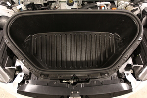- 将前备箱前部挡板安装至车身,然后夹紧将挡板固定到车身的卡子(7 个)。