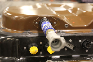 将冷却液泄漏测试适配器固定到功率转换系统进口接头。