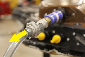 - 从冷却液泄漏测试适配器上断开压力测试夹具软管。
