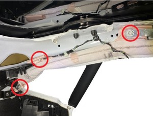 拆下将左侧顶篷后部固定到车辆的卡子(4 个)、系环夹(3 个)和钩子。