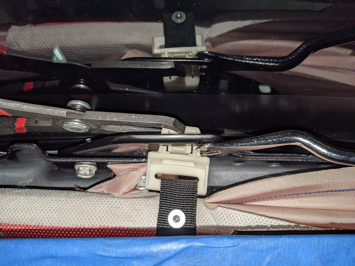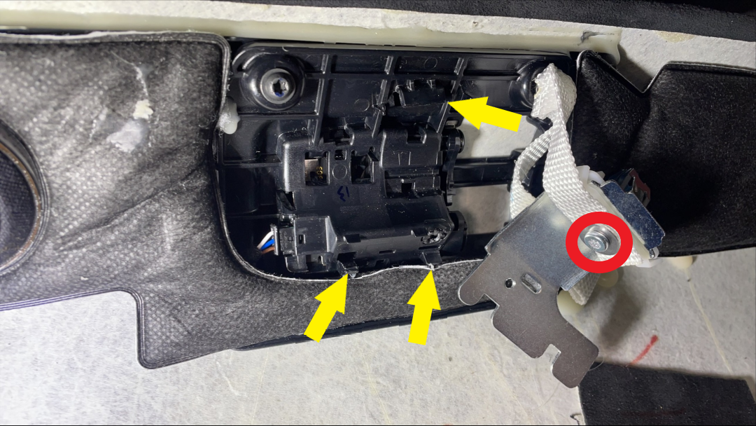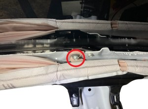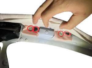 - 撬开以松开固定左侧后衣帽钩螺钉盖板的锁片(2 个)。