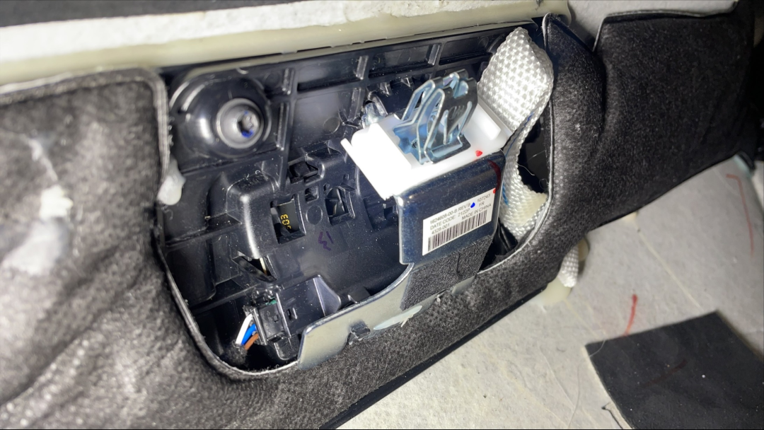 - 连接左侧帘式气囊电气连接器,然后固定安全锁。
