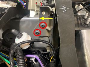 - 松开将空气悬架进气管连接到右侧前端模块 (FEM) 支架上的卡子。