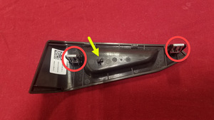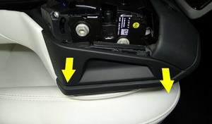 - 将第二排右侧靠背侧护板放置到座椅总成上,然后安装将侧护板固定到总成的卡子(2 个)。