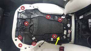 注先固定底部的卡子,然后连接座椅靠背线束。确保卡子安装到位。