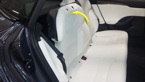 - 将第二排右侧座椅扶起至与地面垂直位置,如果有座椅保护装置,则将其拆下。