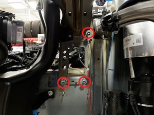 拆下将减震器线束车身支架固定到左侧 Shotgun 支架的螺栓。