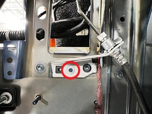 安装将减震器线束车身支架固定到左侧 Shotgun 支架的螺栓。