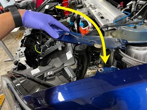 拆下将左侧大灯固定到左侧 Shotgun 支架的螺栓。