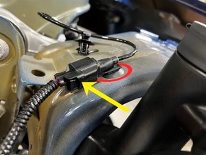 - 连接左侧前车轮转速传感器内联式电气连接器,然后紧固卡子。