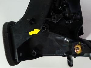 将左侧中控台翻门执行机构放入中控台,然后安装将执行机构固定到中控台的螺钉(2 个)。