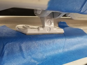 沿着聚氨酯路径为掀背尾门涂抹聚氨酯底漆。