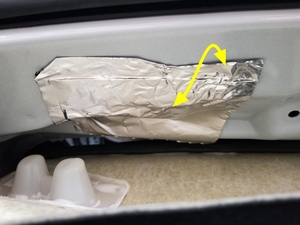 安装将左侧掀背尾门铰链固定到掀背尾门的螺栓,然后将丁基粘贴片松散地安装在检修口上。