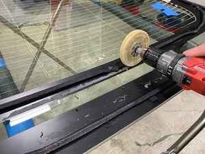 - 小心地擦除掀背尾门玻璃上的剩余聚氨酯。