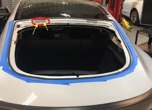 - 在掀背尾门玻璃总成周围的车身上贴上胶带,以发挥保护作用。