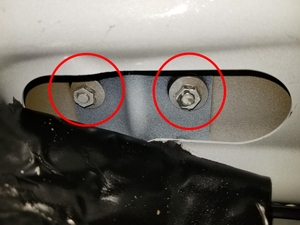 - 拆下丁基贴片,将掀背尾门铰链连接到车身螺母上。