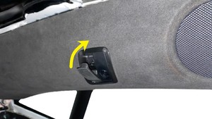 18 个卡子,2 个挂钩;松开时,顶篷将由 8 个系带支撑;向上再向内推动,将衣帽钩总成上的挂钩从车身上松开