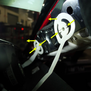 6 个系带夹;有助于后续安装顶篷;可通过 Grainger Punchout 目录中的 eProcurment 购买用于松开这些卡子的理想工具,商品编号 2ZPP2 - GearWrench 推针钳