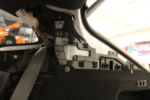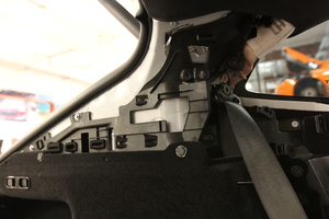 将左侧 C 柱下部饰板固定至左侧 C 柱中部饰板