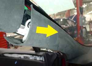 可使用饰板工具将车顶玻璃密封条固定到挡风玻璃密封条下