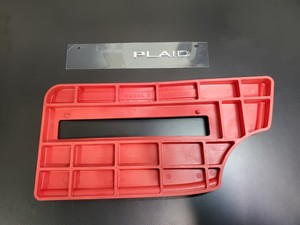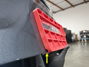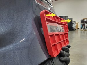 如有必要,将未剥离背胶膜的新 Plaid 字母徽标安装在徽标定位工具上,然后进行快速适配检查。