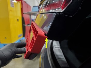 注徽标定位工具需沿掀背尾门的右侧底角对齐。提示: 推荐使用以下工具: