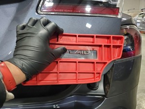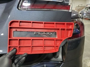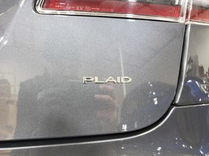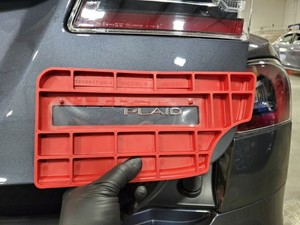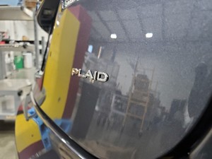 在掀背尾门上安装新的 Plaid 字母徽标。