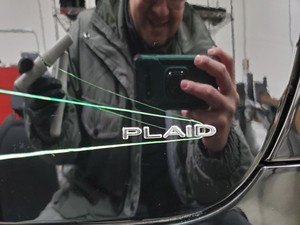 - 目视检查 Plaid 字母徽标,确认安装正确。擦去污渍。