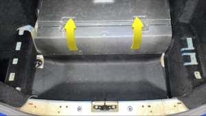 - 将后部电机舱绝缘体向上折叠,然后将后行李箱底板 NVH 绝缘体从车辆上拆下。