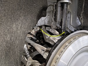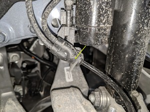 - 拆下将线束固定到转向节的夹子。