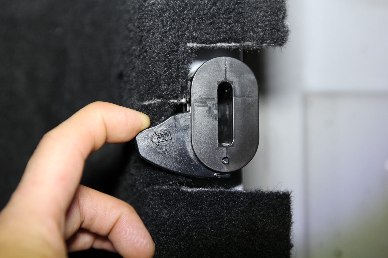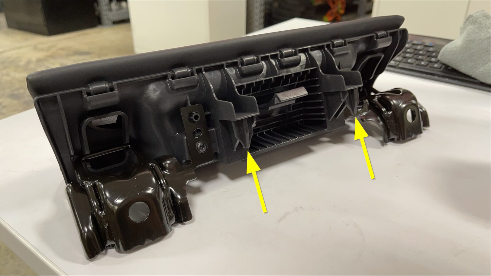 注Test fit isofix assembly and cut off trim from impressions left in NVH surface