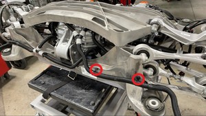 - 拆卸后副车架总成。请参阅副车架总成 - 后(Plaid 版)(拆卸和安装)