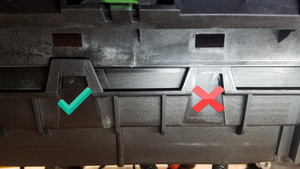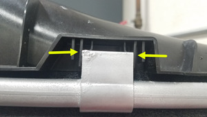 注在接合锁片之前,先对齐固定销。确保格栅在锁片内侧而非外侧滑动。