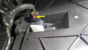 - 松开连接器锁,然后断开与主动进气格栅传动装置连接器的连接。