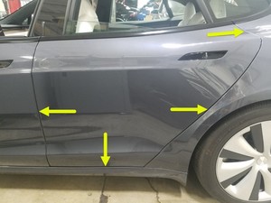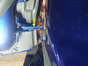 - 根据需要,在车身侧面下部铰链螺栓处涂抹修补漆。