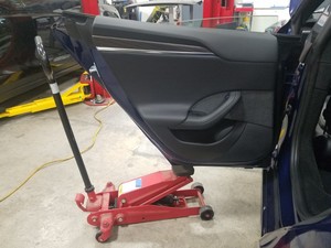 - 将左侧后车门下部铰链放入车内。