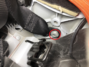 安装一个新下部螺栓,将第二排左侧座椅安全带卷收器固定到车身上。