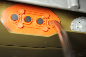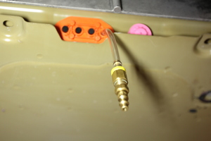 注当压力达到 0.3 psi 并稳定时,关闭右侧升降器阀。压力达到 0.3 psi 大约需要 60 秒。