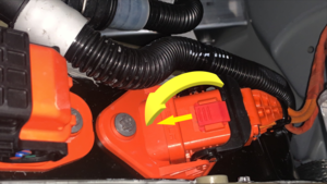 断开低压电池连接器和紧急响应回路 (FRL)。
