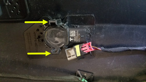- 松开将驻车距离传感器固定到前饰板的锁片,然后将传感器从饰板上拆下。