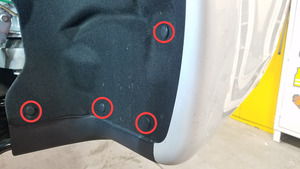 - 拆下将左侧后轮拱内衬固定在前饰板上的推拉式卡子(4 个),然后将内衬移到侧面以便检修。